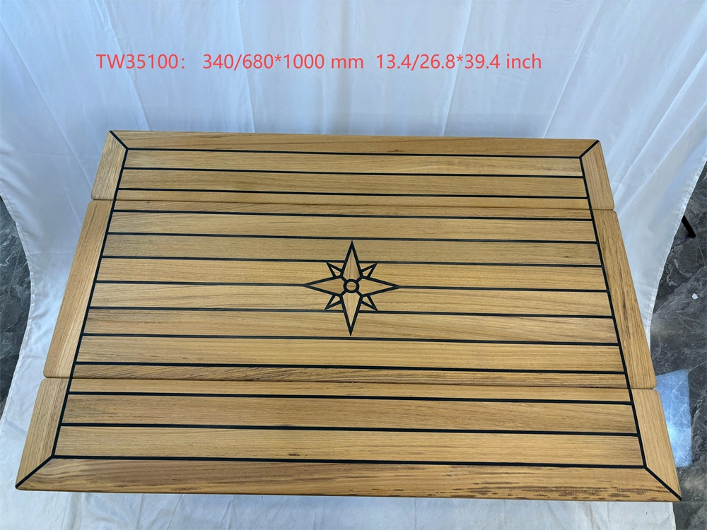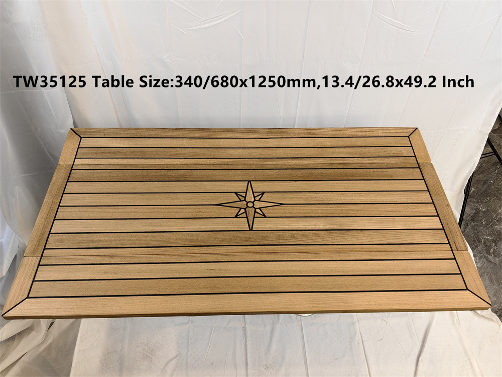 Boat Rectangular Folding Teak Table Top Two Wing 340/680×600,340/680×800,340/680×1000,340/680x1250mm Star Inlay Marine Yacht RV