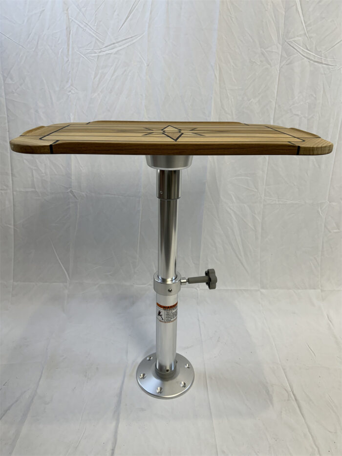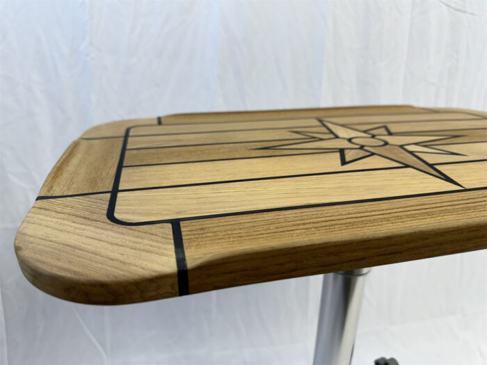 Teak Table, Star Inlay, Round Corners on classic rectangular table
