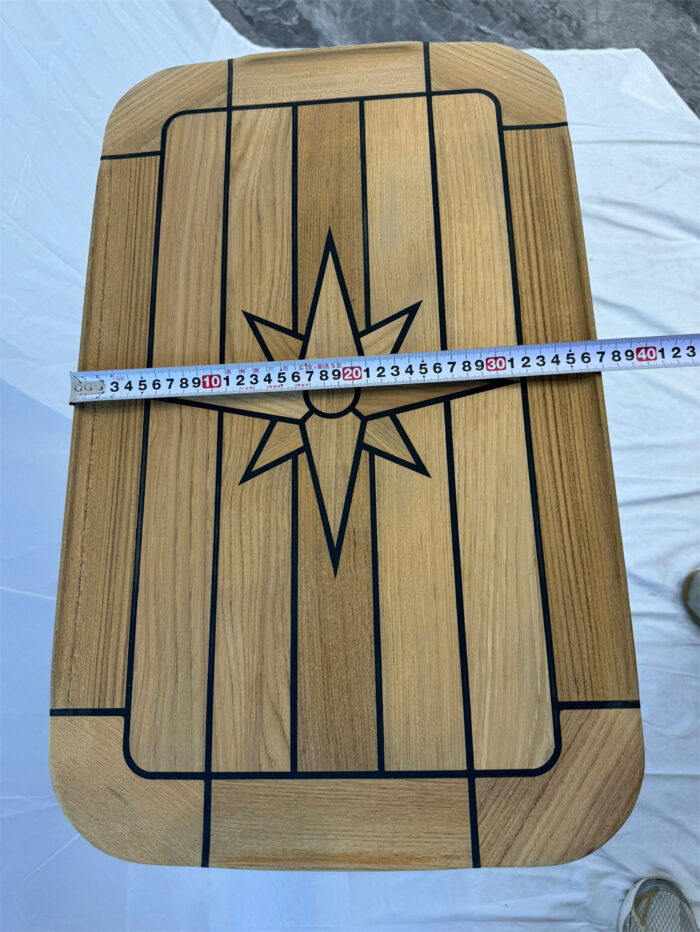 Boat Rectangular Teak Table Top 370x 600mm,14.6×23.6 Inch Star Inlay Round Corner Marine Yacht RV TTR4060