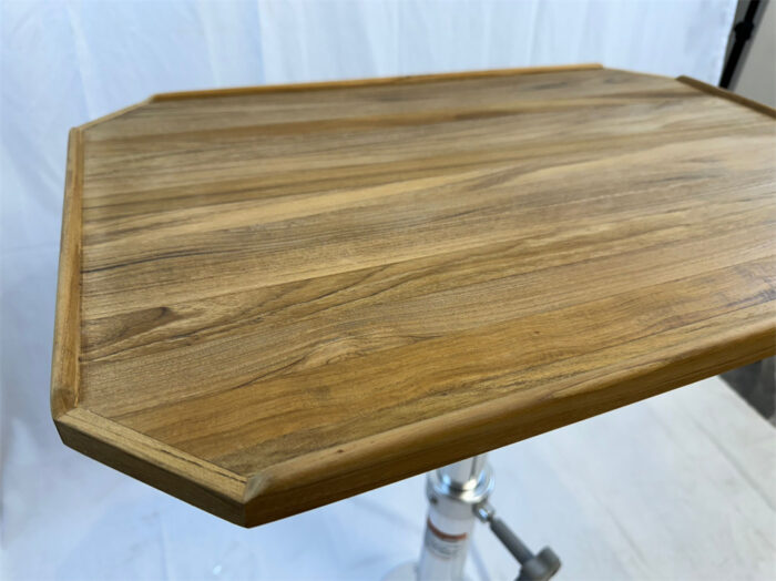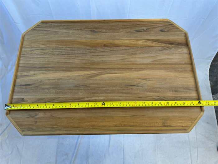 Teak Table, Rectangular with no caulk-lines. Cut corners and fiddles around the table.