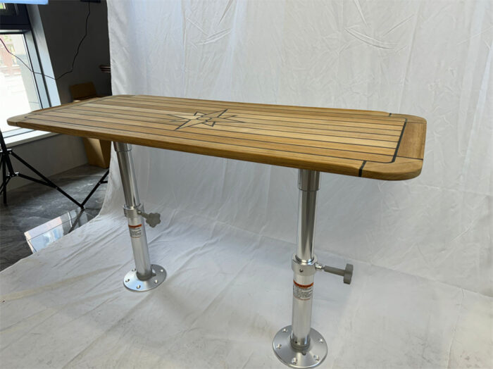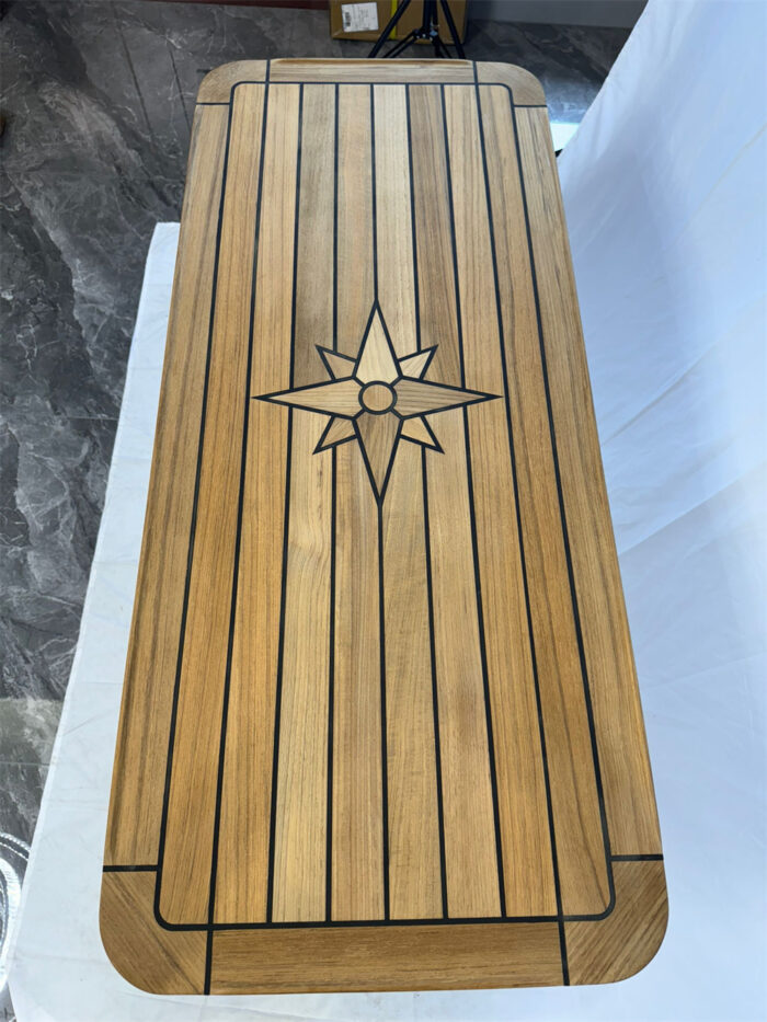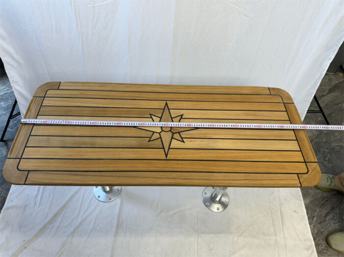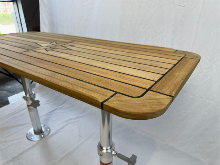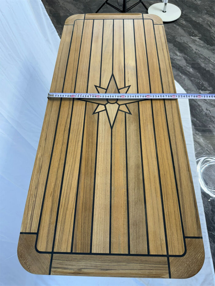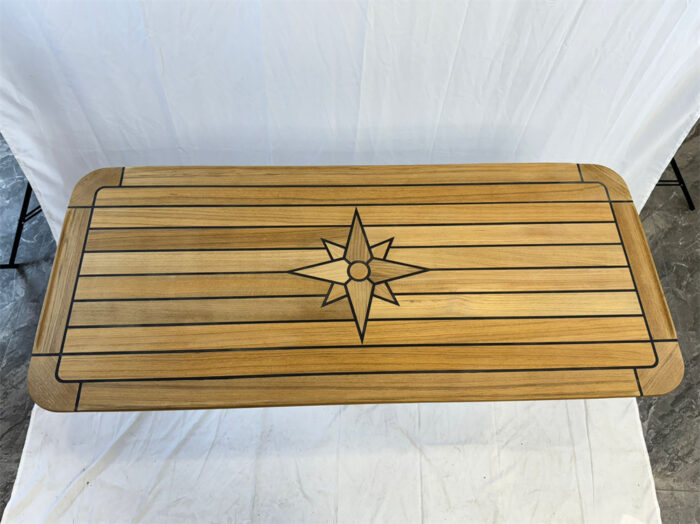 Boat Rectangular Teak Table Top 510x1200mm,20.0×47.2 Inch Star Inlay Round Corner Marine Yacht RV TTR50120