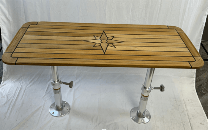 Teak Table, Star Inlay, Round Corners on classic rectangular table