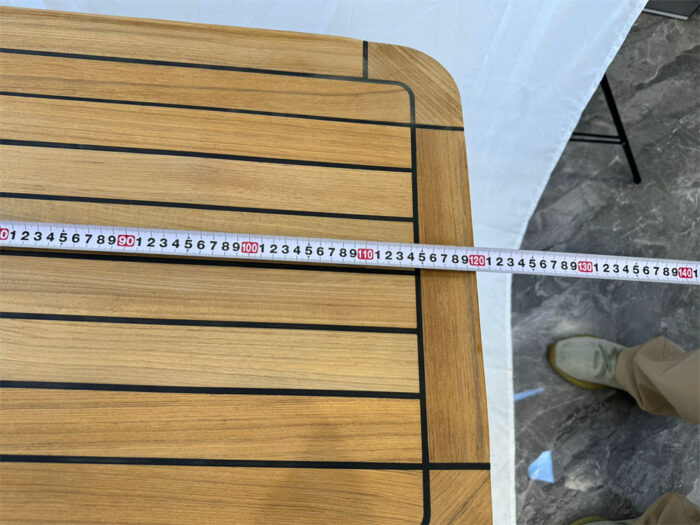 Surface consists of 4 mm thick, carefully selected teak slats bonded with deck caulking