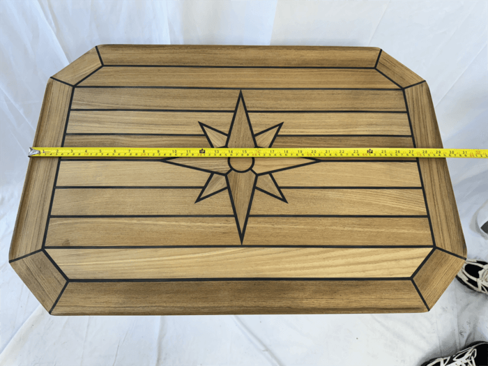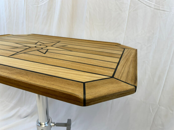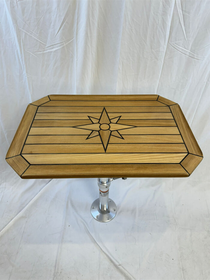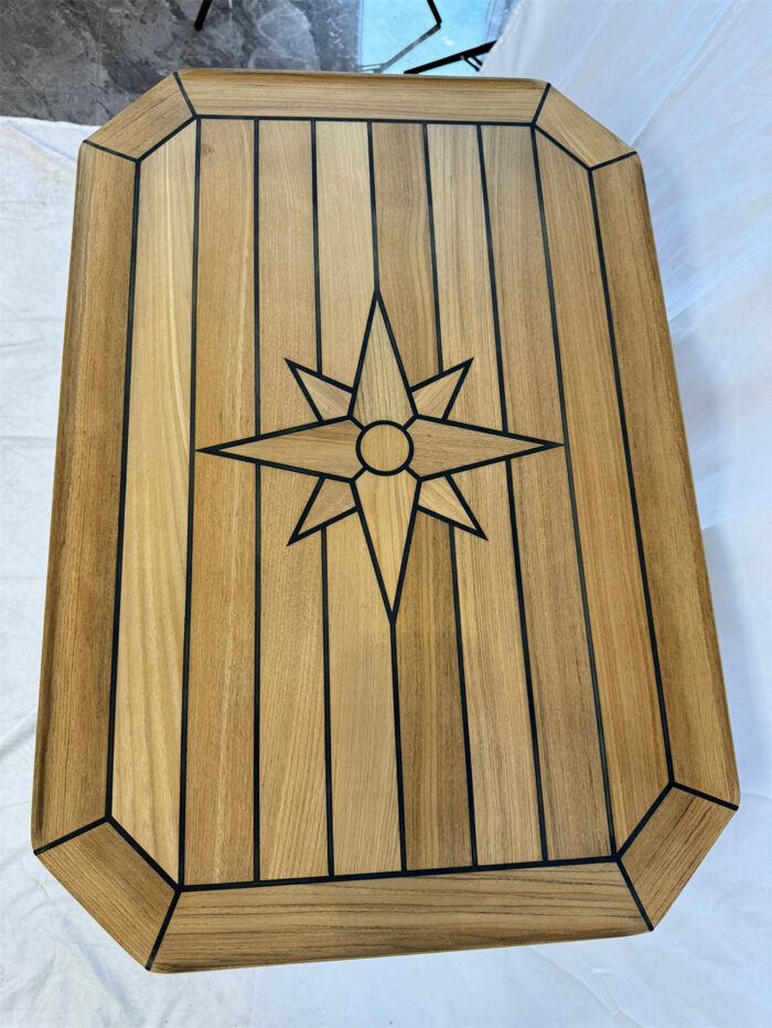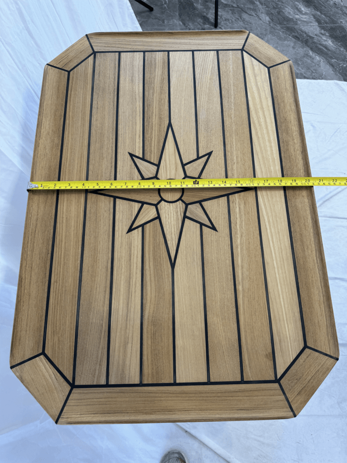 Teak Table, Star Inlay, Sqaure Corners on classic rectangular table
