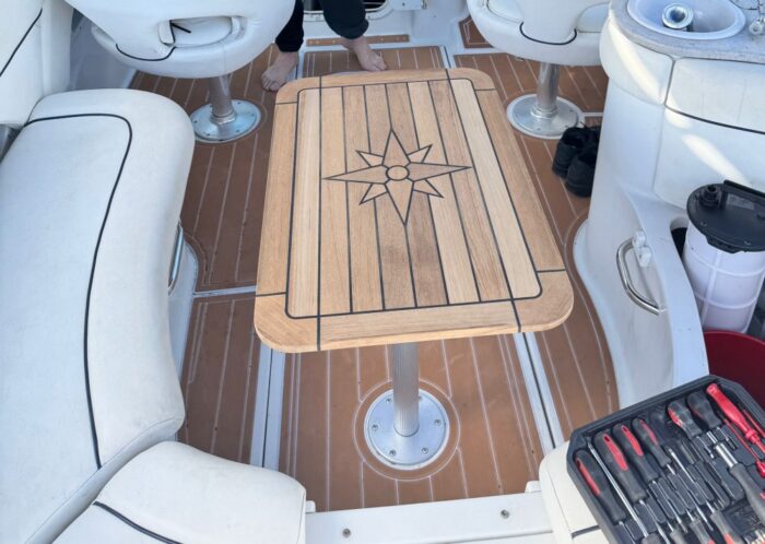 Surface consists of 4 mm thick, carefully selected teak slats bonded with deck caulking