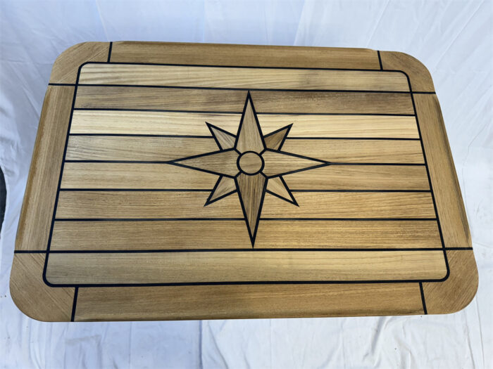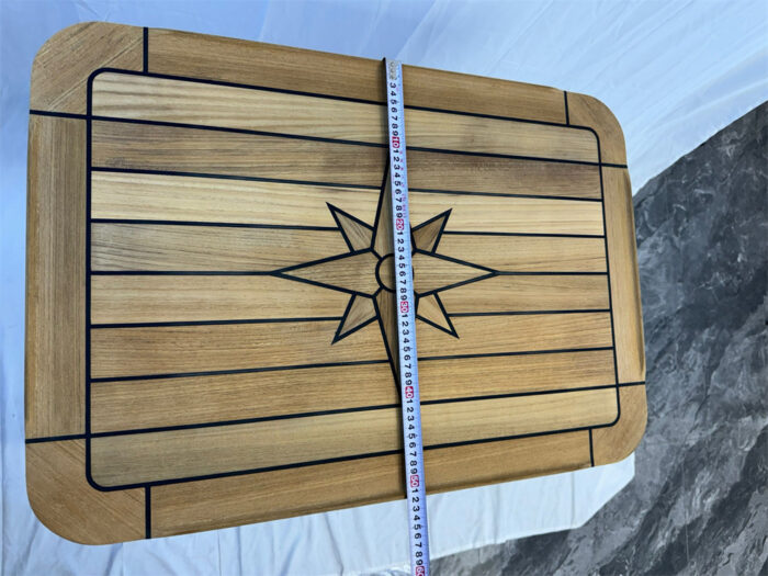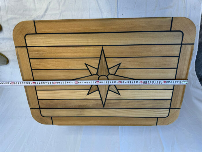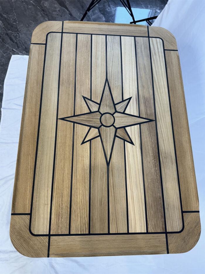 Boat Rectangular Teak Table Top 510x750mm,20.0×29.5 Inch Star Inlay Round Corner Marine Yacht RV TTR5075