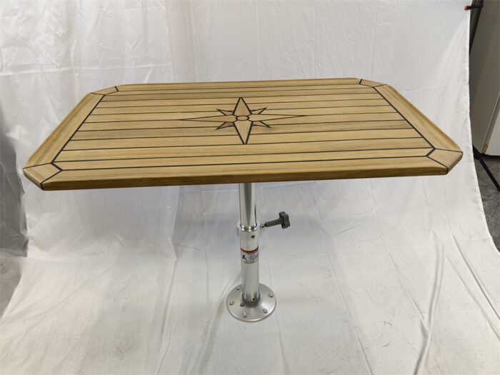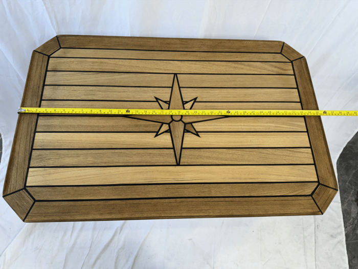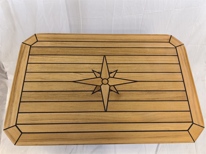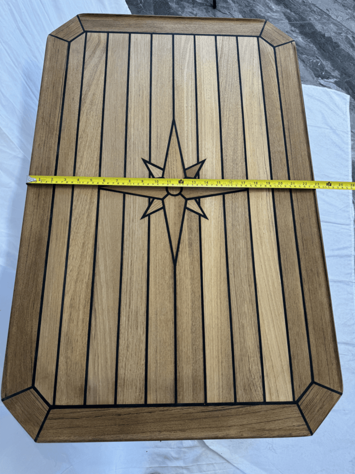 Teak Table, Star Inlay, Classic Cut with squared-off corners.