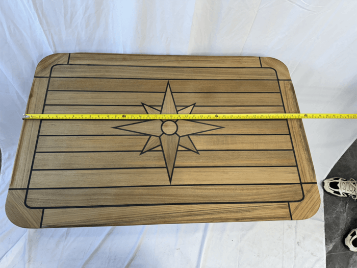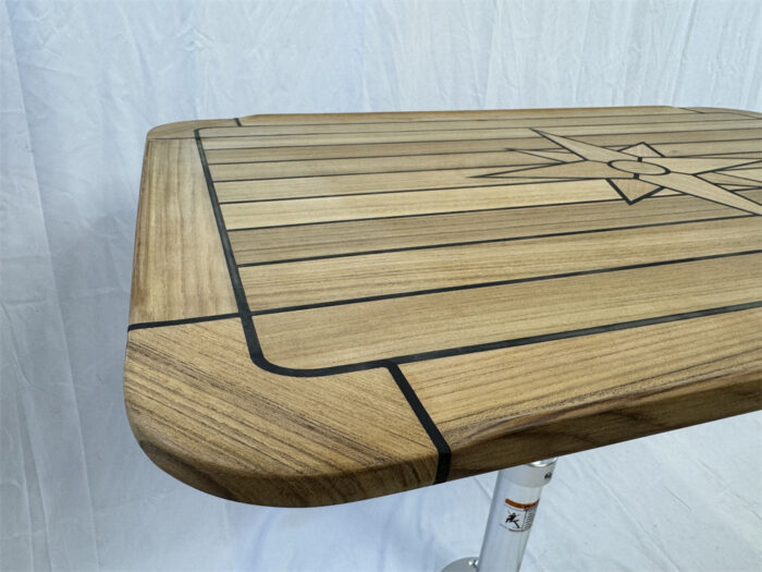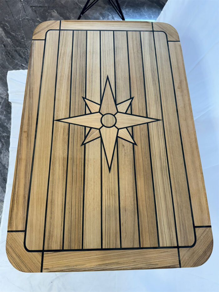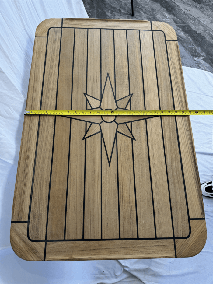Boat Rectangular Teak Table Top 580x900mm,22.8×35.4 Inch Star Inlay Round Corner Marine Yacht RV TTR6090