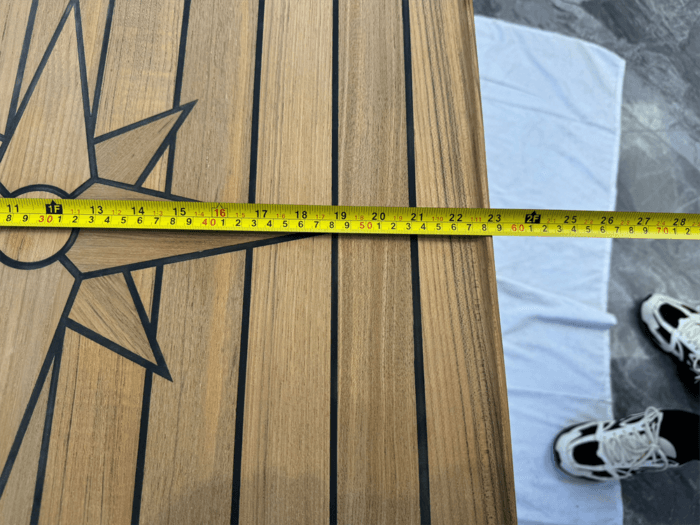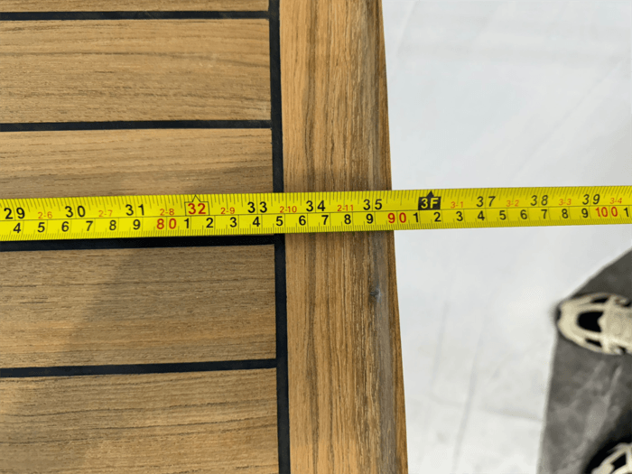 Surface consists of 4 mm thick, carefully selected teak slats bonded with deck caulking
