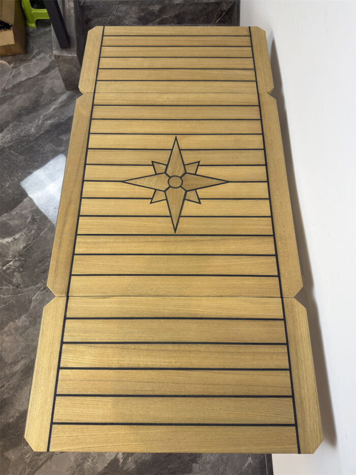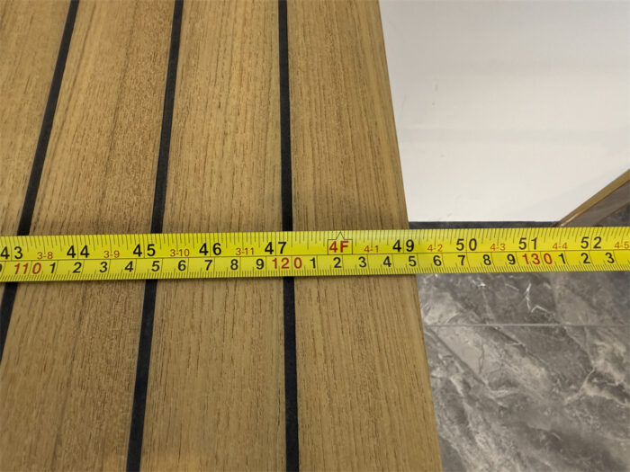 Surface consists of carefully selected teak slats bonded with deck caulking