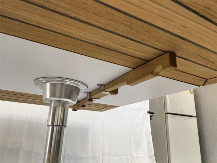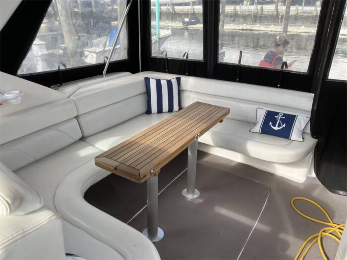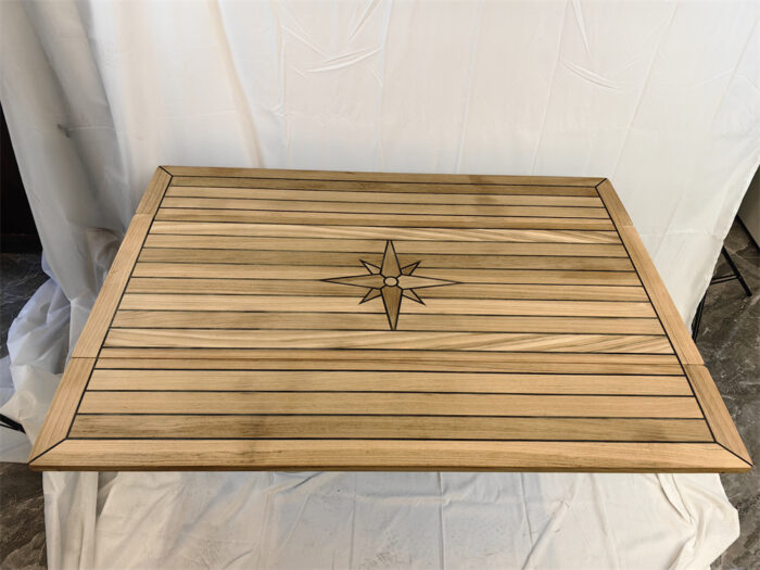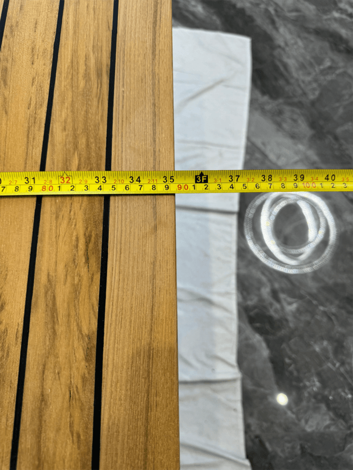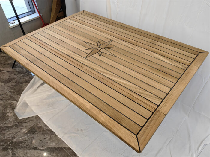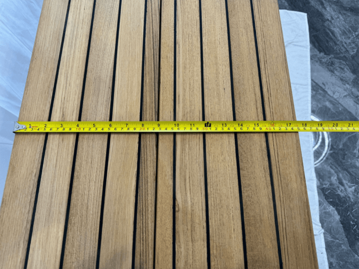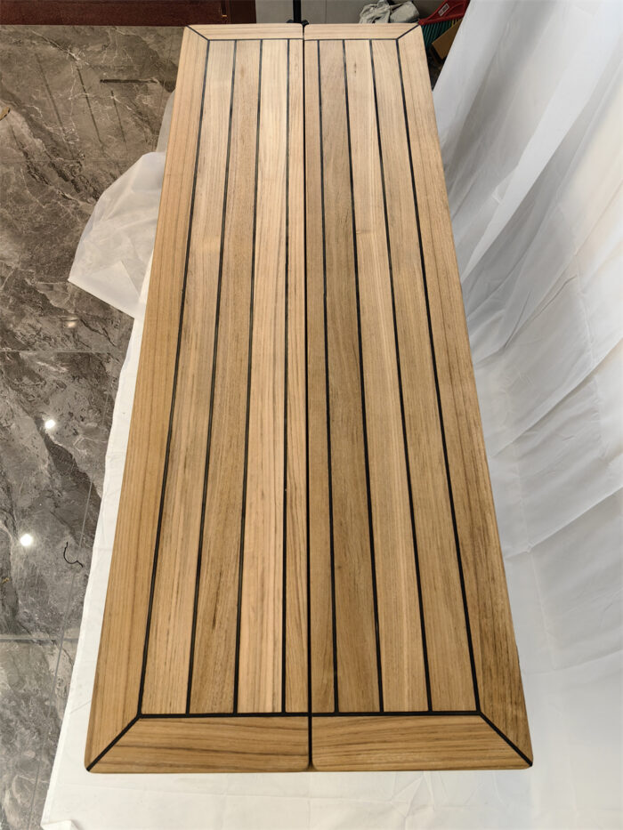 Surface consists of carefully selected teak slats bonded with deck caulking
