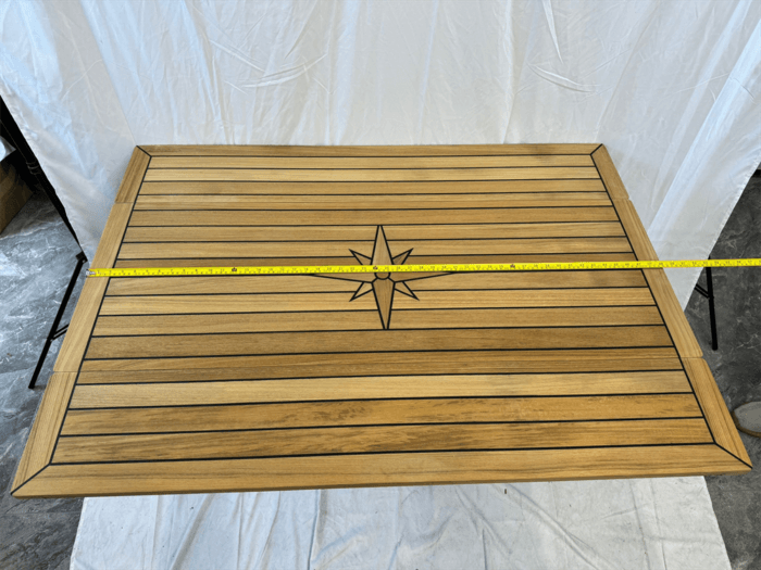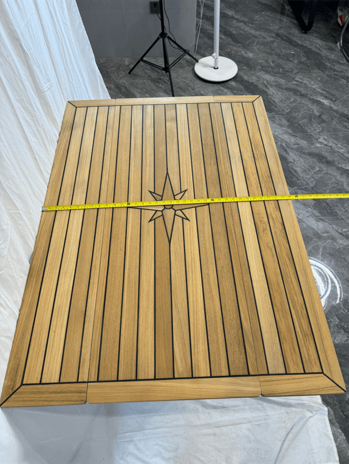 Folding Wings Teak Table Top 450/900x1250mm,17.7/35.4×49.2 Inch Rectangular Star Inlay Marine Yacht RV TW45125