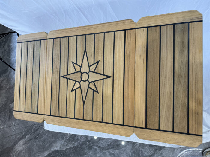 Surface consists of 4 mm thick, carefully selected teak slats bonded with deck caulking