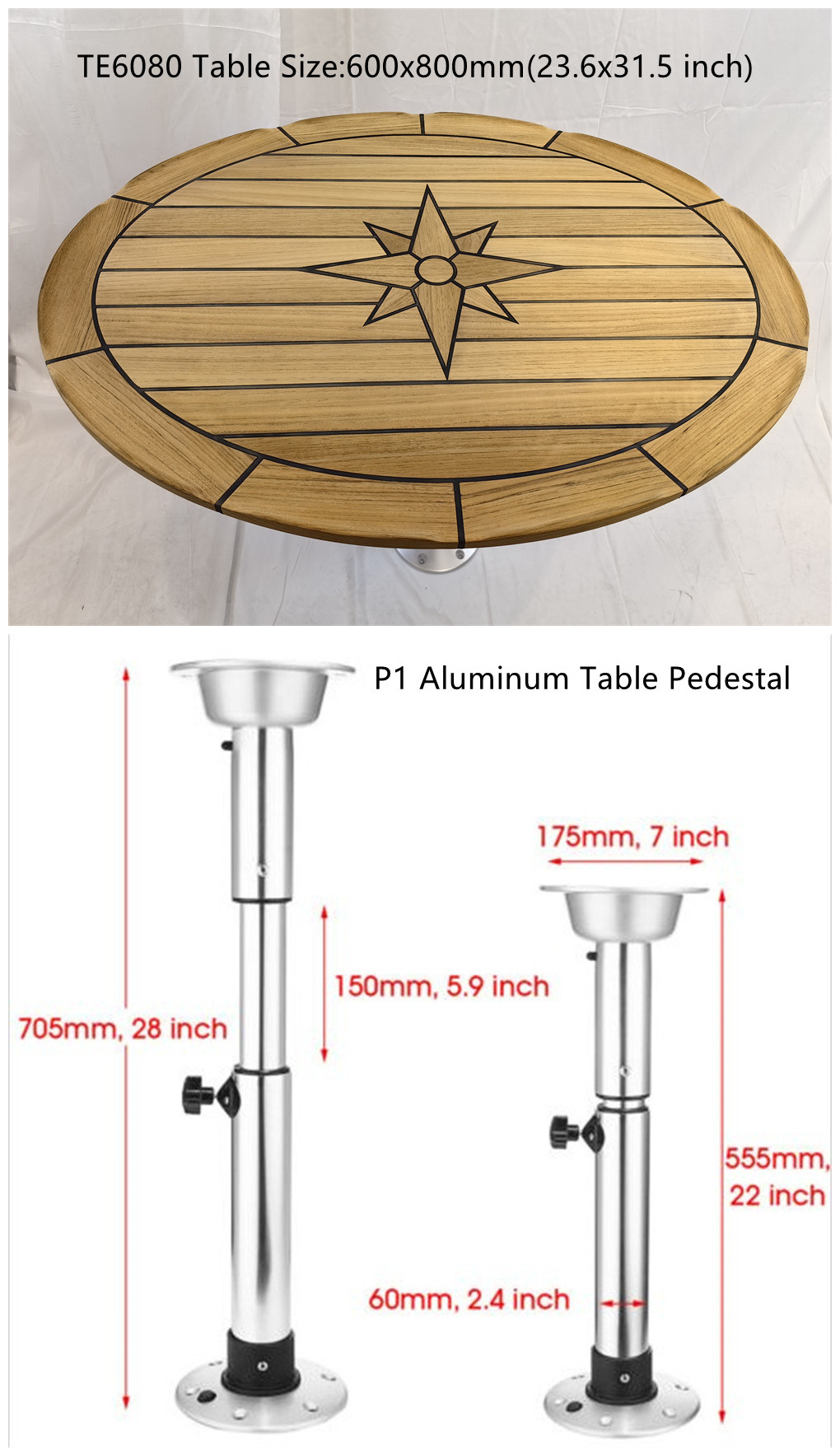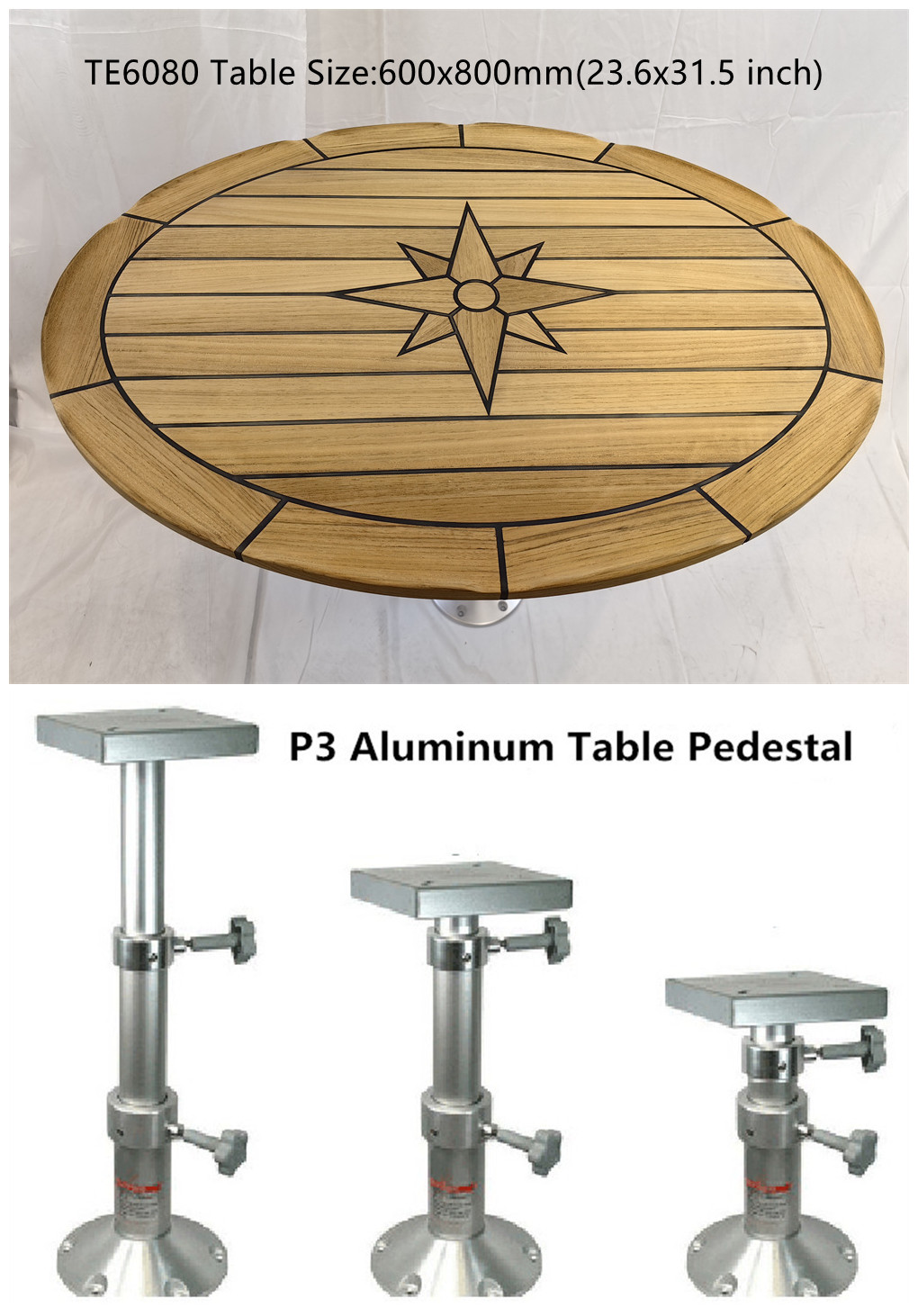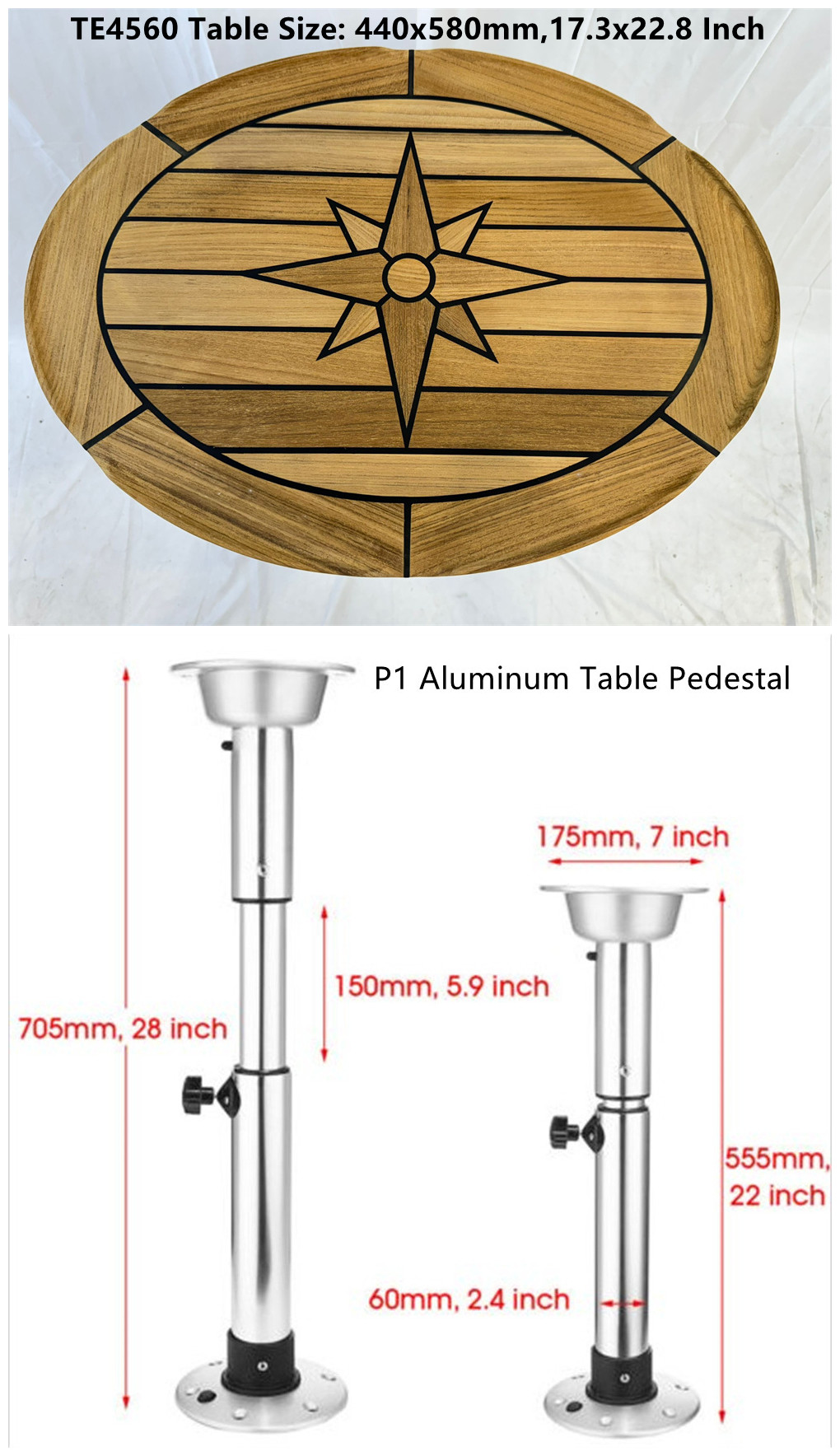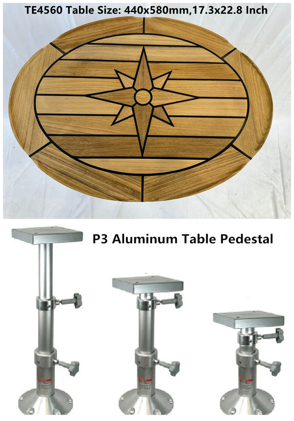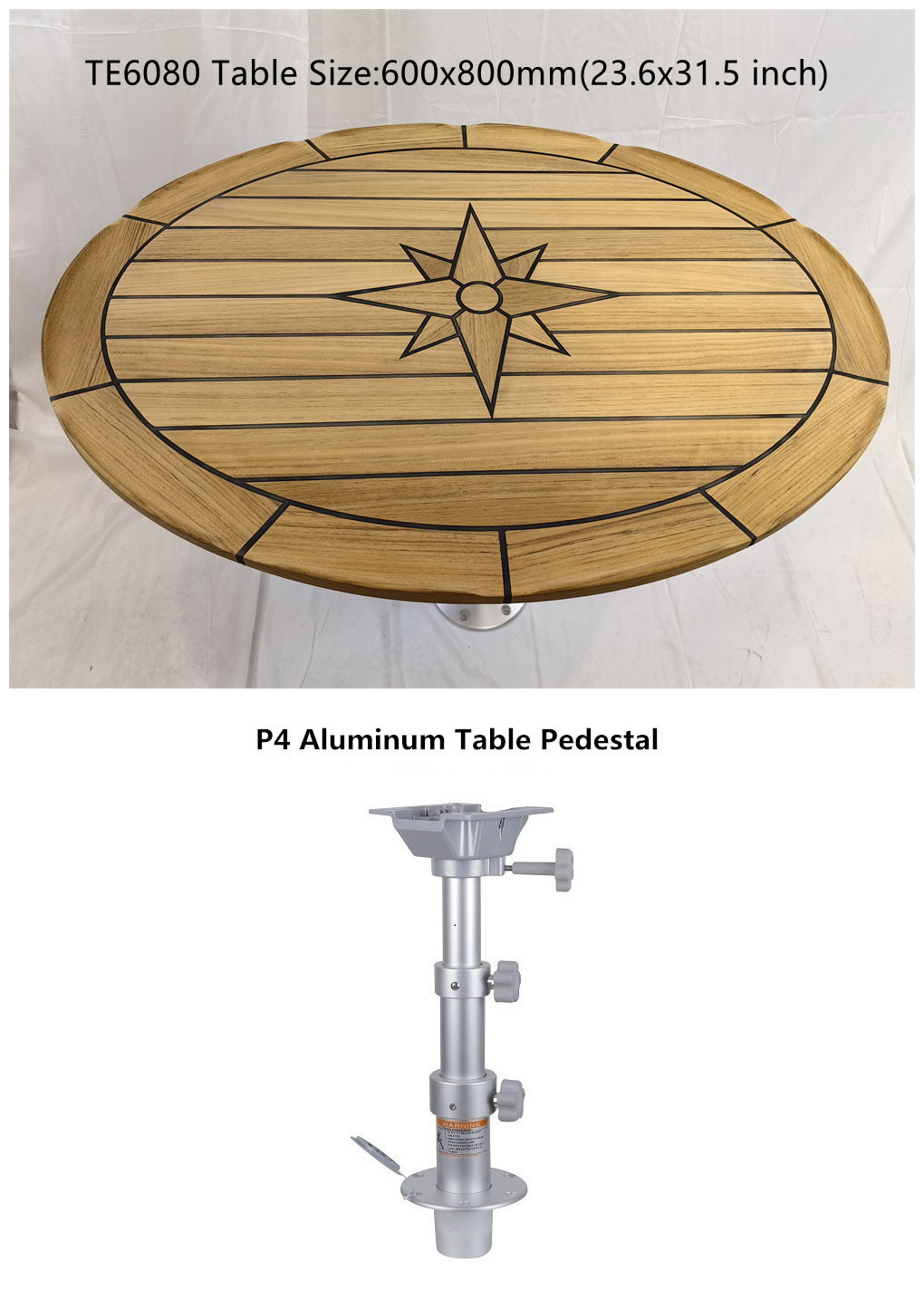 Oval Shape Teak Table Top 440×580/600x800mm,17.3×22.8/23.6×31.5 Inch Ellipse Star Inlay Marine Yacht RV